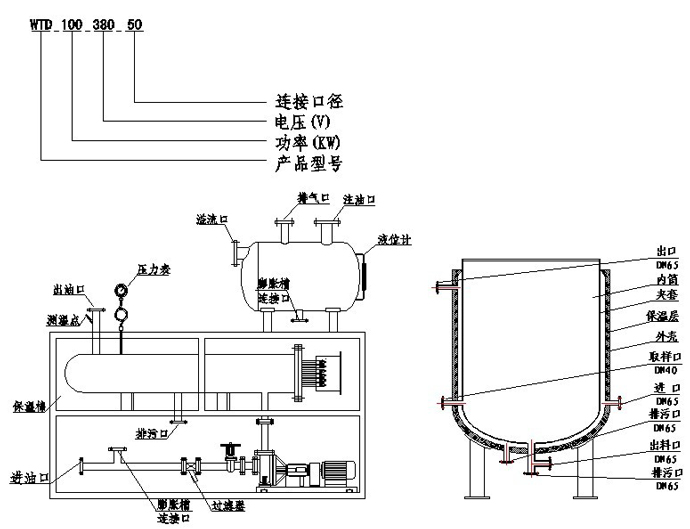 對(duì)于電加熱油爐,熱量是由浸入導(dǎo)熱油的電加熱元件產(chǎn)生和傳輸?shù)模詫?dǎo)熱油為介質(zhì),利用循環(huán)泵,強(qiáng)制導(dǎo)熱油進(jìn)行液相循環(huán),將熱量傳遞給用一個(gè)或多種用熱設(shè)備,經(jīng)用熱設(shè)備卸載后,重新通過(guò)循環(huán)泵,回到加熱器,再吸收熱量,傳遞給用熱設(shè)備,如此周而復(fù)始,實(shí)現(xiàn)熱量的連續(xù)傳遞,使被加熱物體溫度升高,達(dá)到加熱的工藝要求。規(guī)格型號(hào):